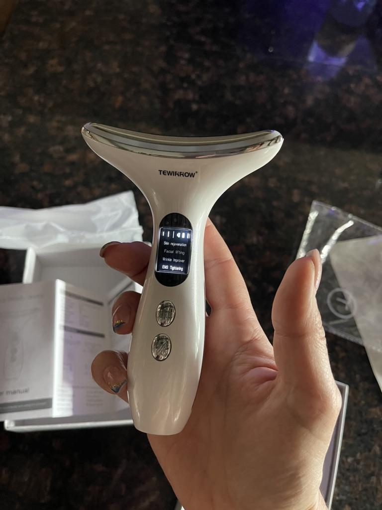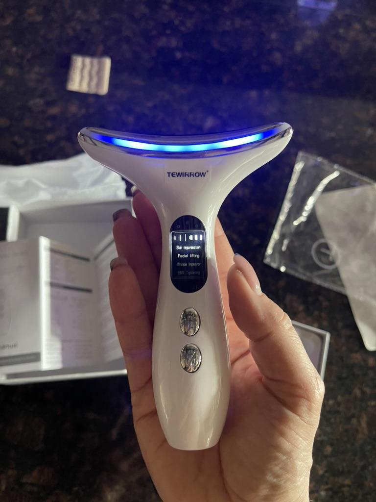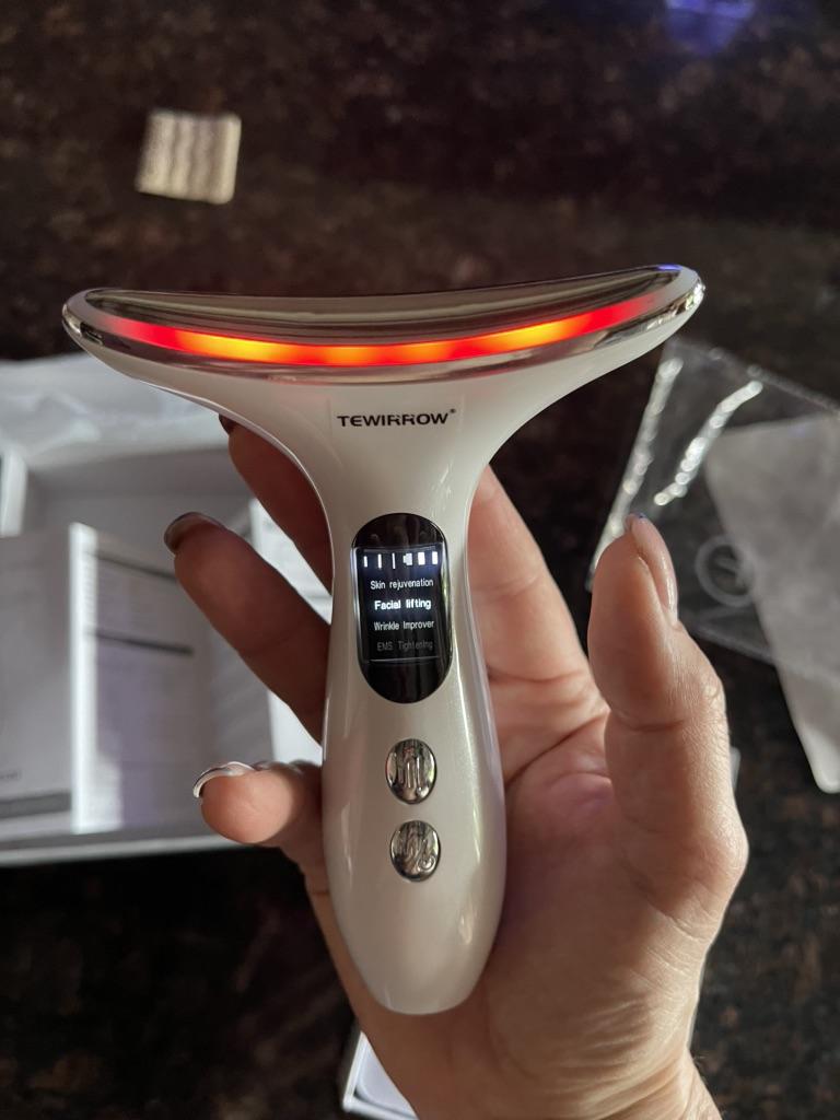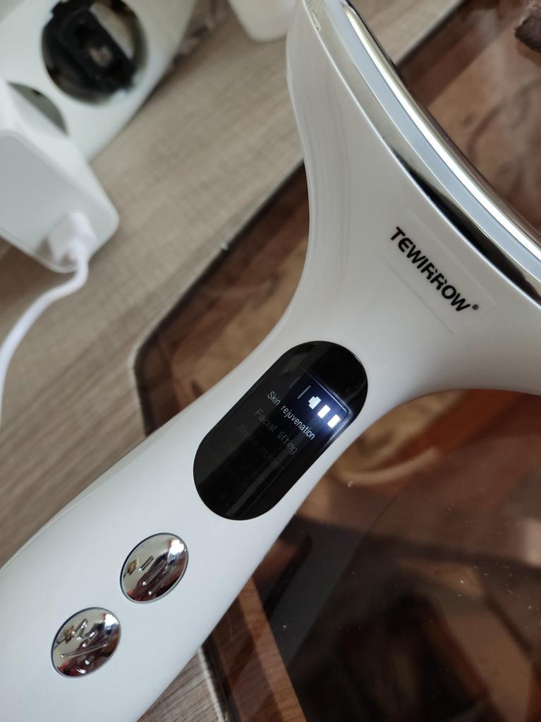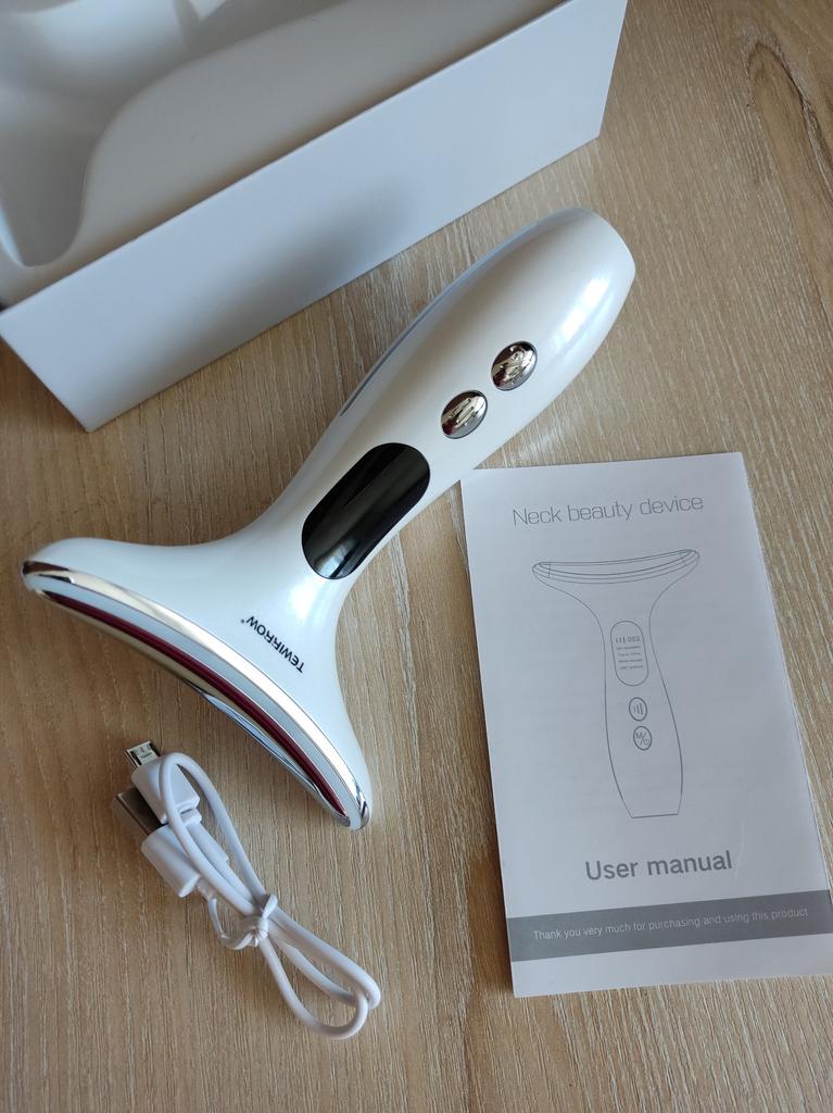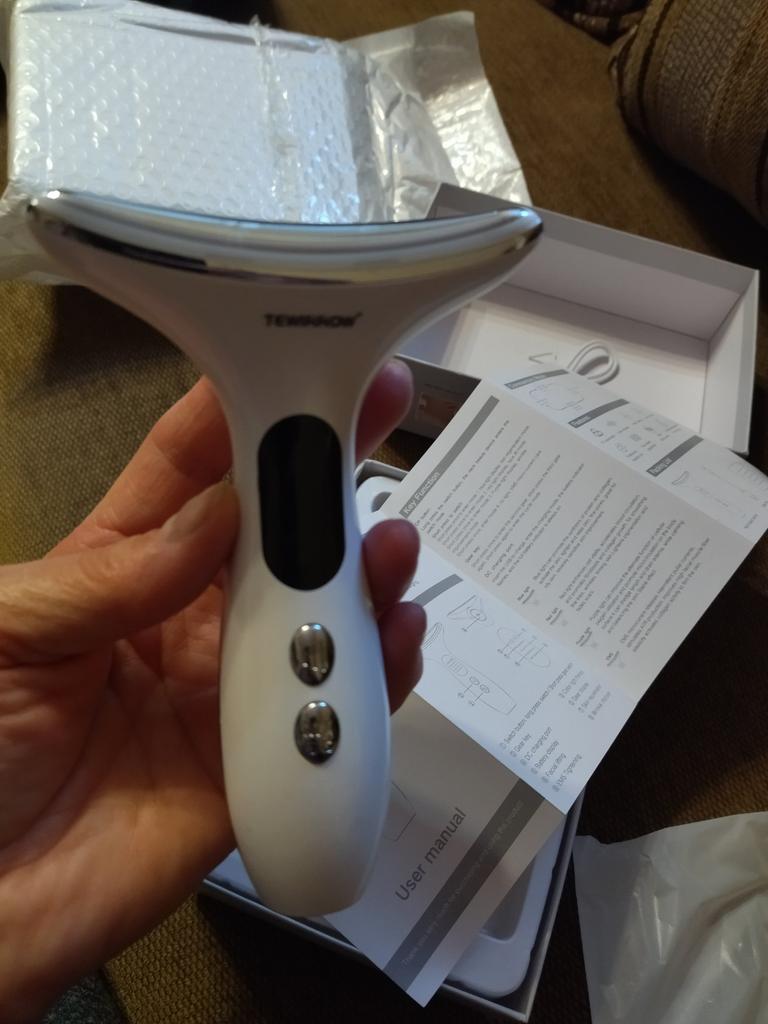 Looks very good. Useful. But from the beginning I didn't like some noises inside, like a rattle. You can hear that on the video. I only used 5 times, charges slowly and works for a short time when touching skin, unfortunately other colors purple and blue light I only used 3 times. At the red light turns off. I think there is a defect somewhere. I would like to exchange if possible. Or refund the money please. I order a new device. Thank you in advance. Attached you send video that I have only received and current. I only put 2 stars because of defect