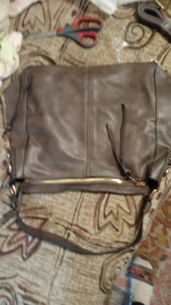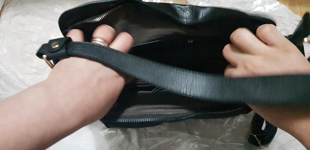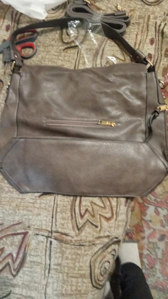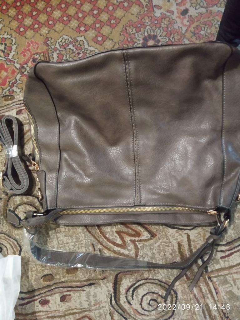 The bag is very beautiful. The leather is textured, not smooth as in the picture. It has many pockets. The ones on the sides are pockets, not just zippers for decoration. Inside it has 4 pockets, one in the center (larger) and in the back with zippers and 2 smaller open ones for small things. On the outside, it has a zipper with a zipper on the back. Above the main zipper, it has a flap to hide it. It also has 2 straps, a short one (does not detach) and a long one (detaches). The long strap has a fabric strip sewn on the inside to prevent stretching and damage to the artificial leather.