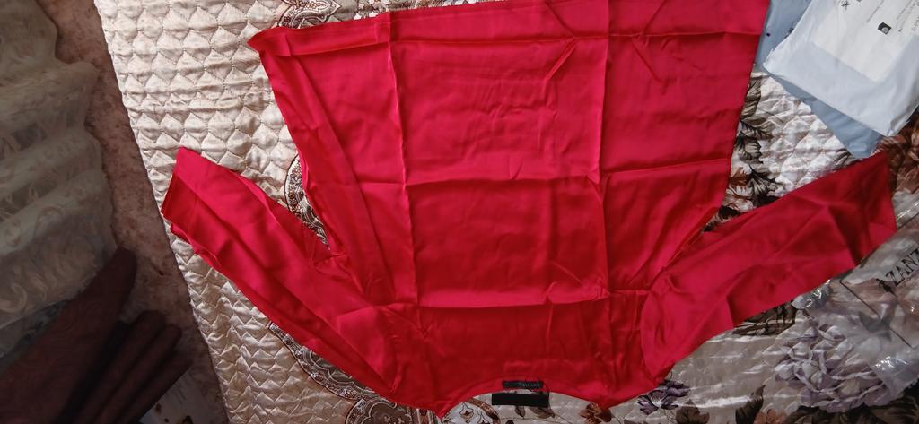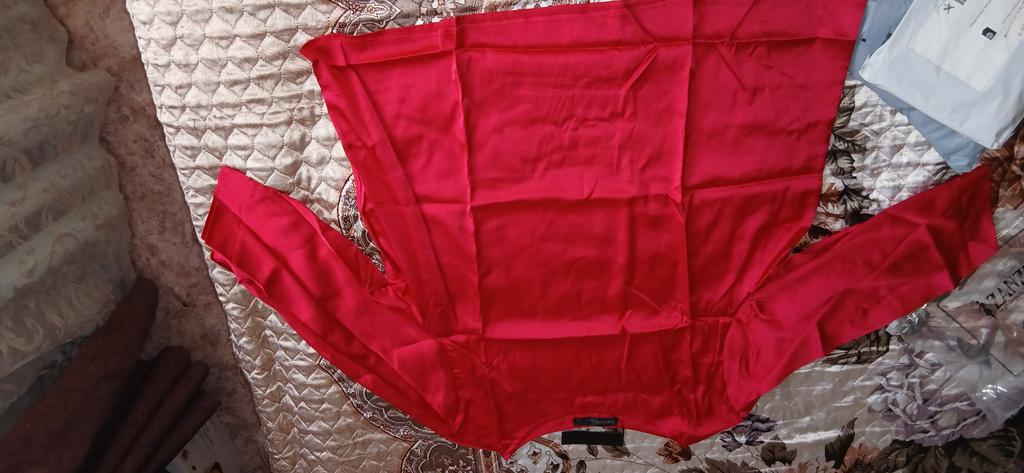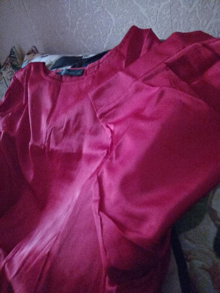 Beautiful shiny blouse, simple in design but the color is great