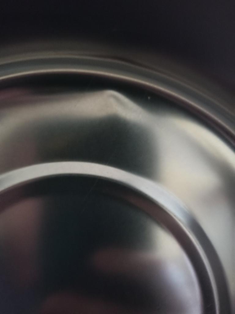The large container was slightly dented. Arrived on time. Maybe it was dented during transport.