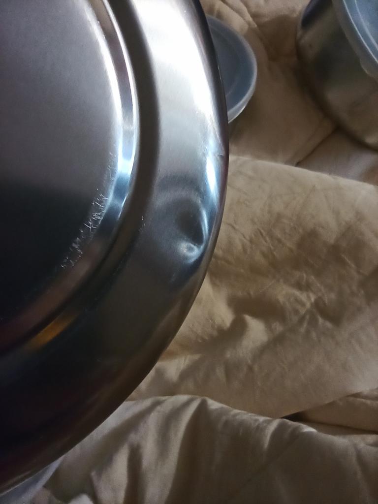 tray 18cm bl under hail bottom all dented - no marketable appearance