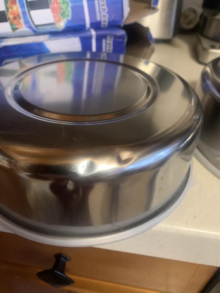 Convenient bowls. Good tight lid. And this is how my mother cut her finger while washing it. Such a sharp edge.