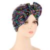 Turban Hat Bag Cap Bow Sequin Muslim Solid Color Hat