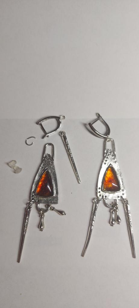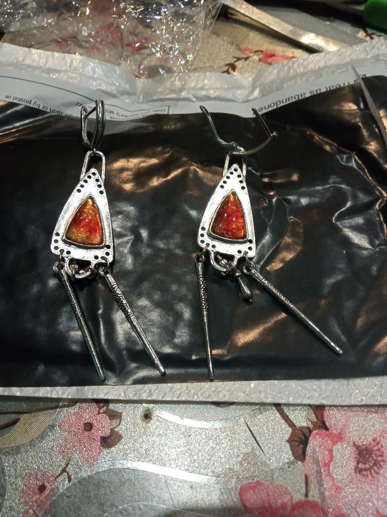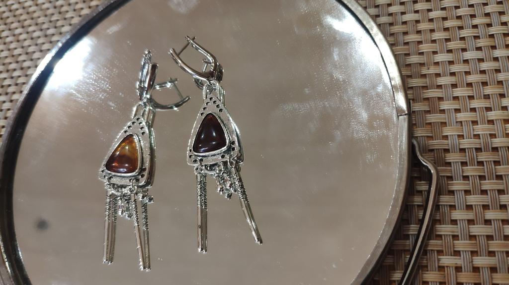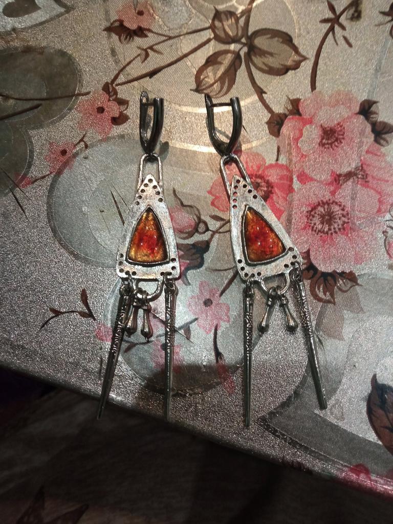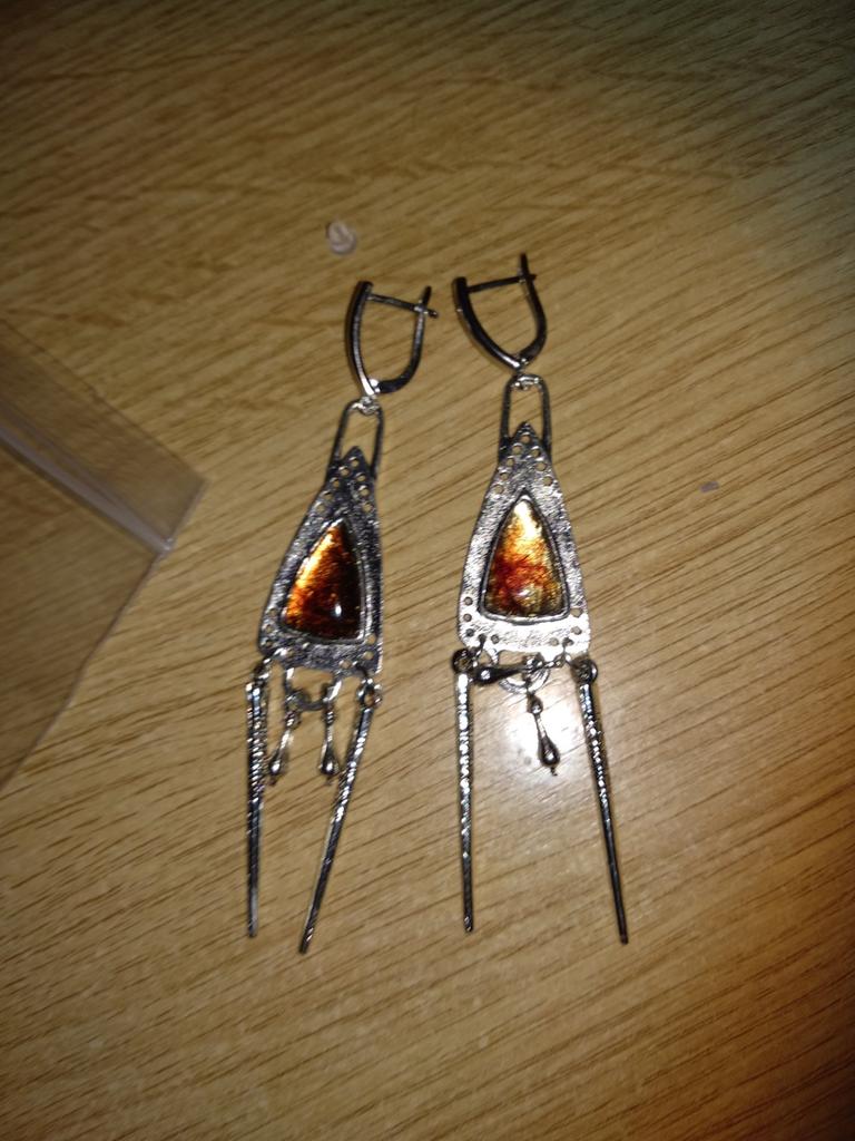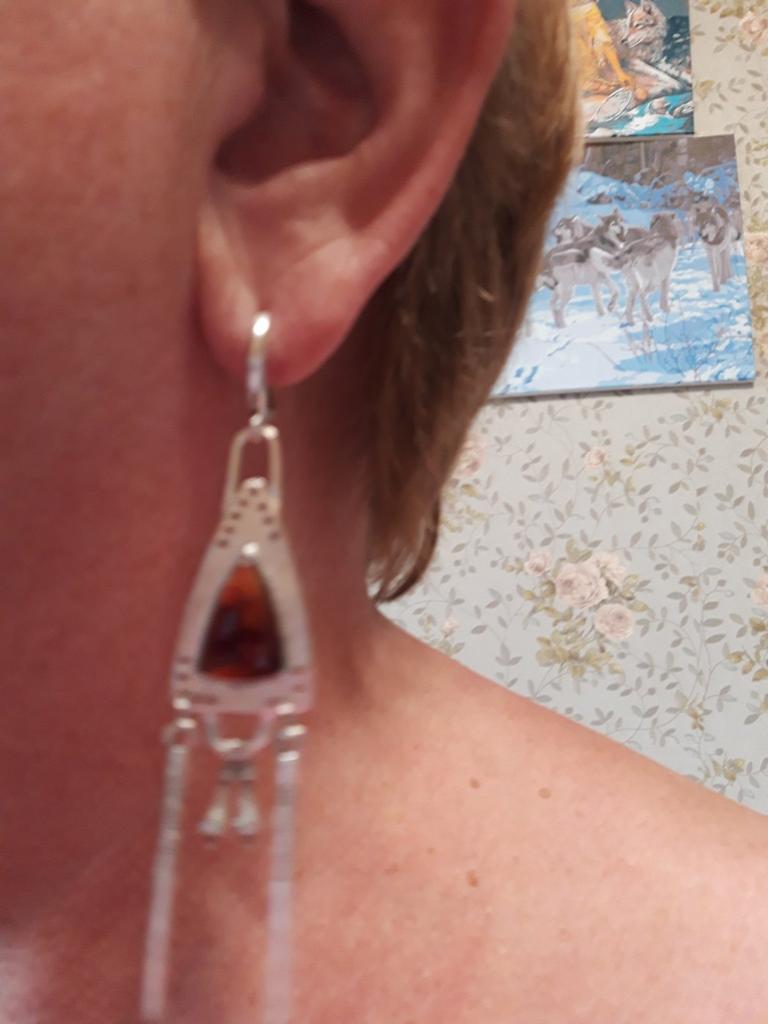 Beautiful, interesting, light! Amber stones. I replaced the wires because they were weak and broke quickly. I really like how they jingle harmoniously on my ears!