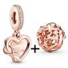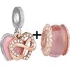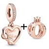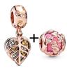 2pcs /Lot New Trend Crown Feather Zircon Hollow Leaves Beads Fit Original Brand Charms Silver Color Bracelets Women Diy Jewelry
