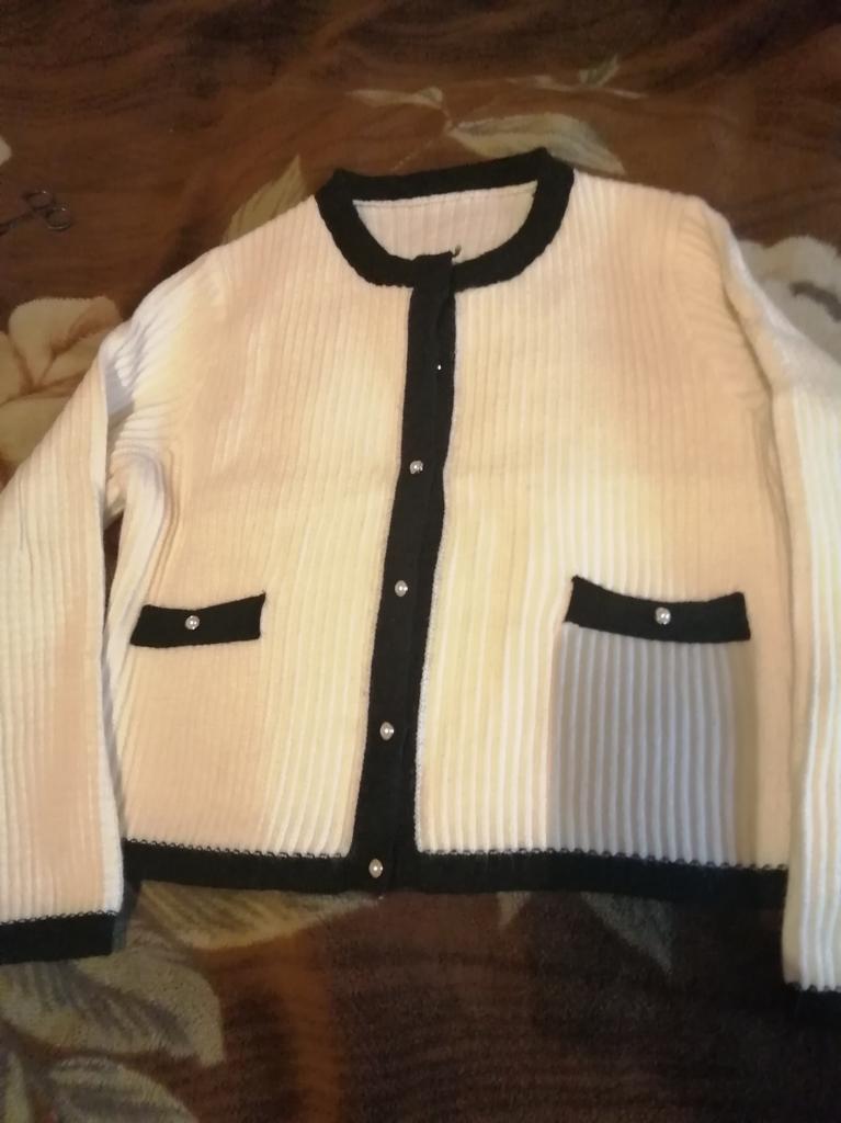 Cardigan in the style of Coco Chanel. The sewing is not factory-made, not very high quality, but the price corresponds to the quality, some things had to be corrected, good buttons. In general, I am satisfied