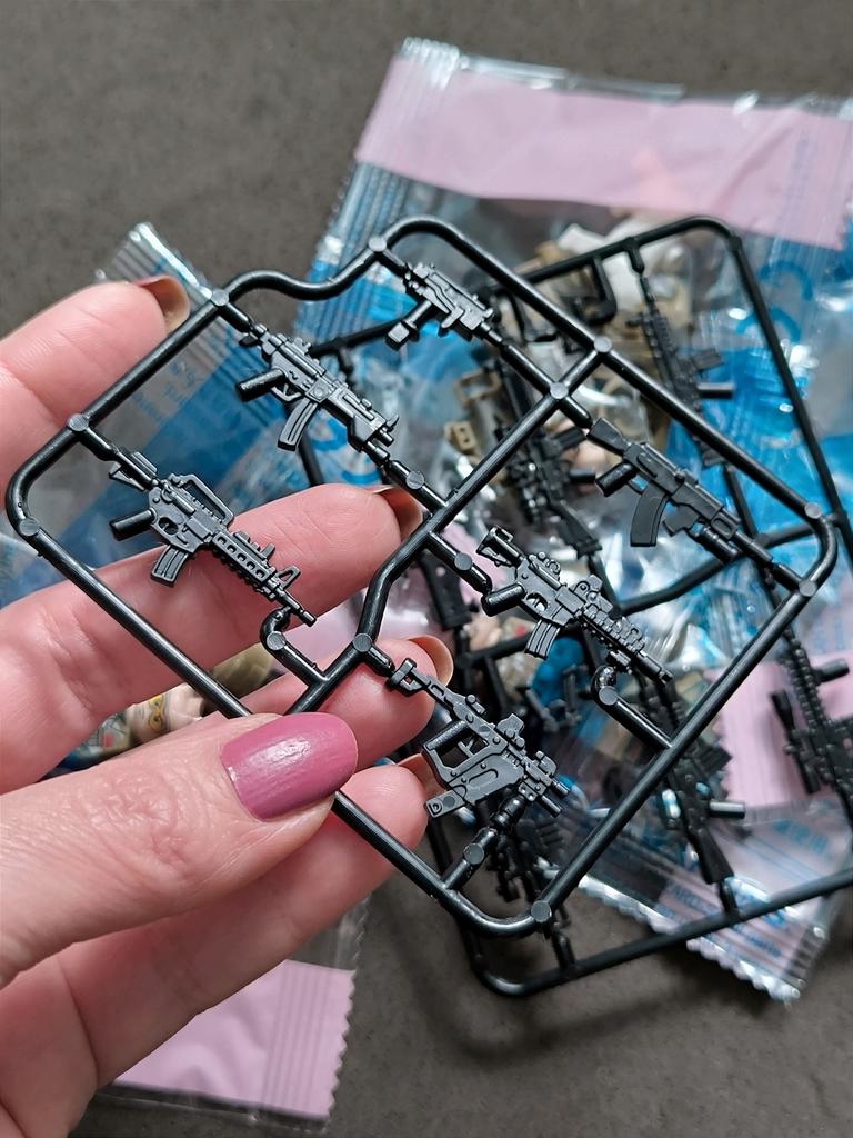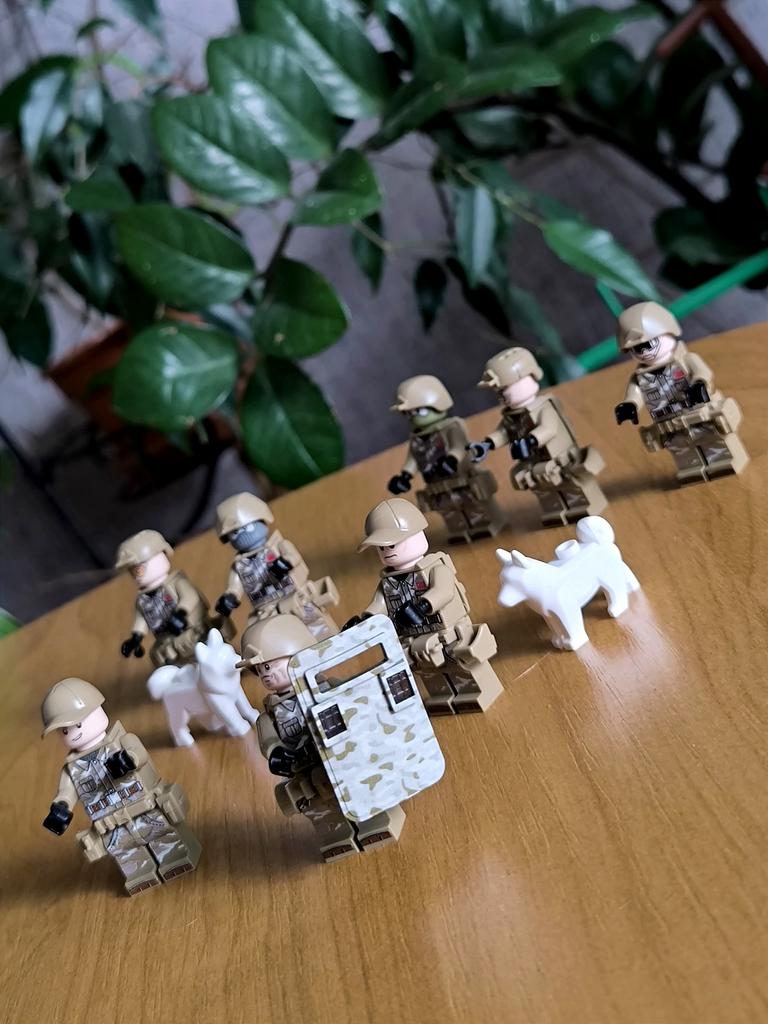 Building Blocks Set, Assault Border Patrol Construction Minifigures It's a great purchase that I really liked. ππππππ. π¦ Package Content: Building Block Set, Assault Border Patrol. Armament Set. 2 dogs. πPros: Delivery to Spain in 21 days. βοΈ Super well packed for the trip. its quality is good. 8 soldier minifigures. 2 dogs. Set of weaponry submachine guns and assault rifles. Very good collection of soldier blocks. Recommended for children over 6 years old and adults. πCons: Not recommended for children under 5 years of age, due to having small parts that could be swallowed. .