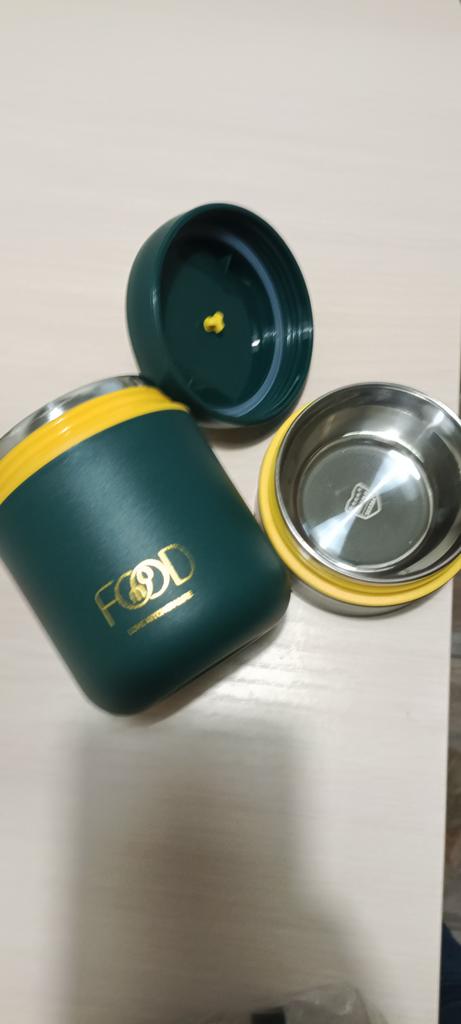 Just a jar that doesn't keep the heat. Decide for yourself whether to buy it or not. But I was expecting a thermos, not a jar. And the container is less disappointing
