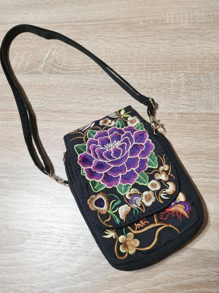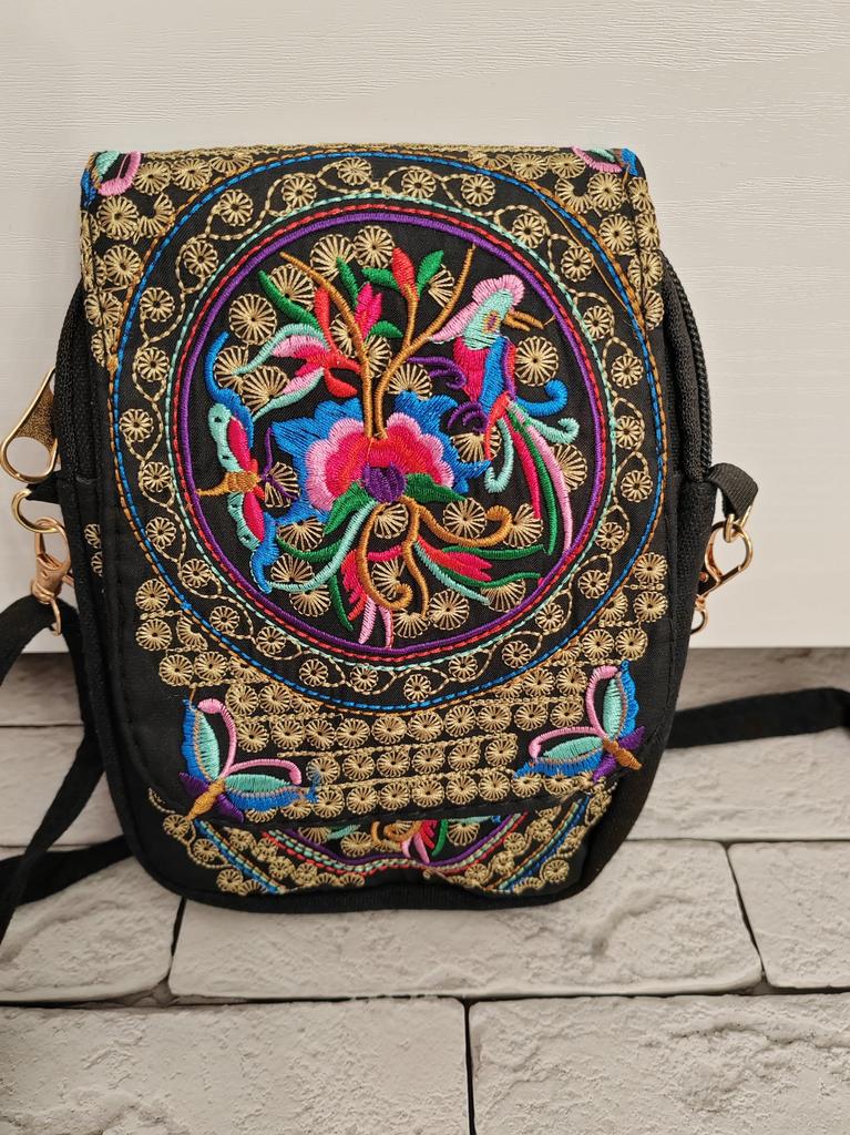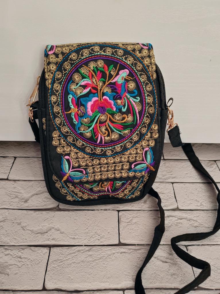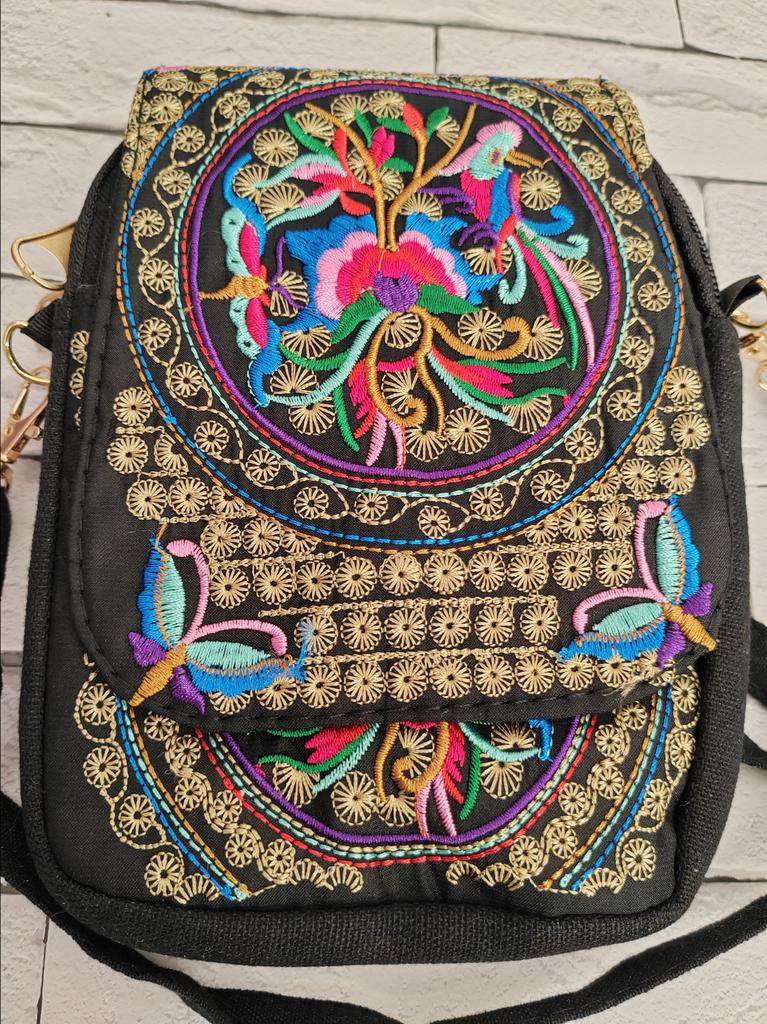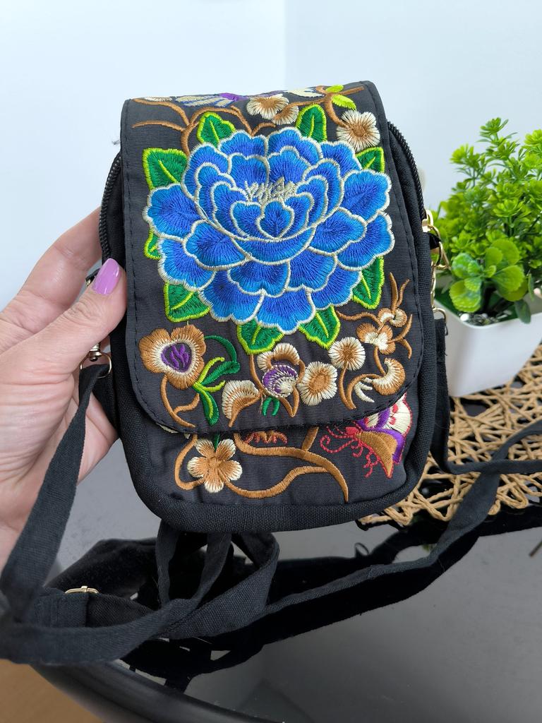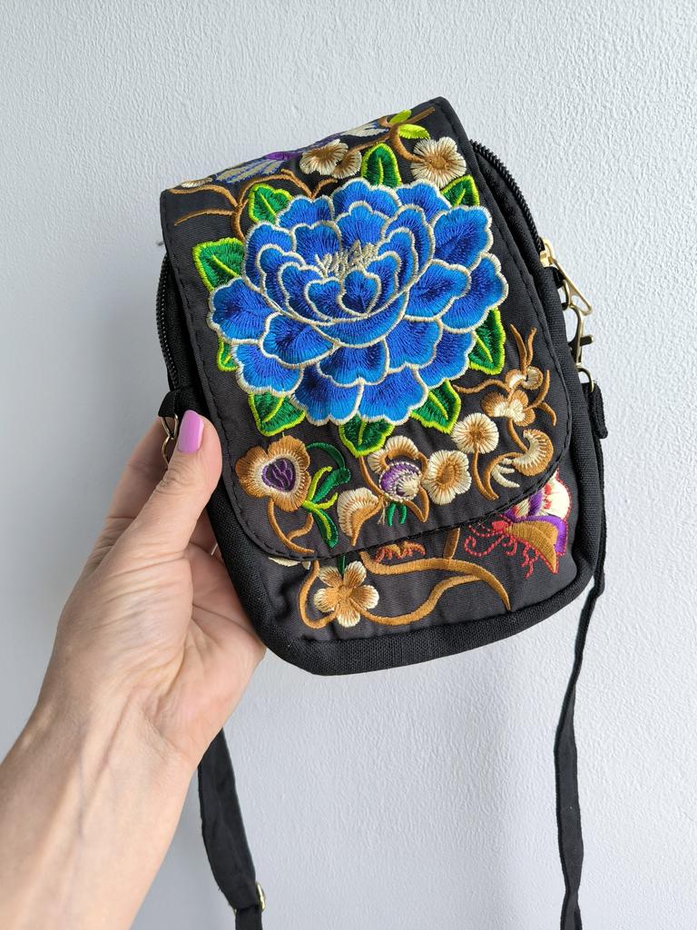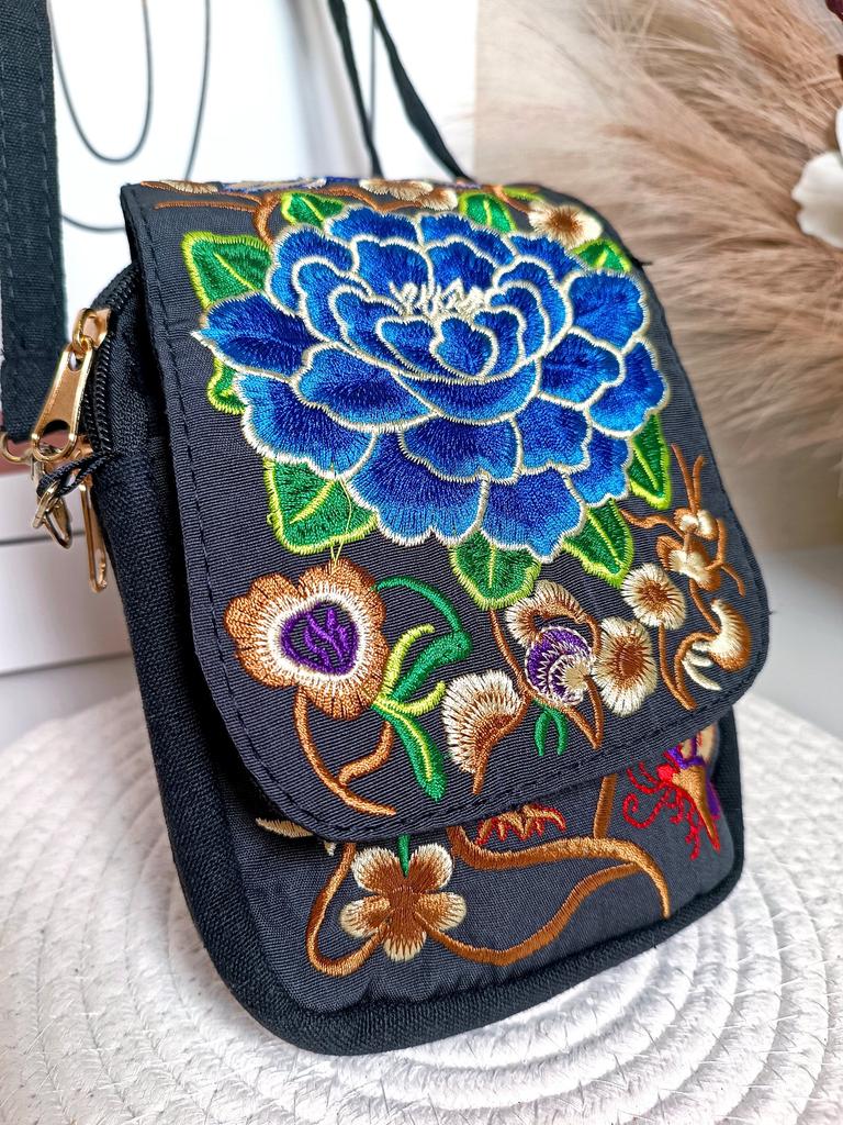Travel Phone Purse National Canvas Shoulder Small Vintage Boho Ethnic Embroidery Bag for Women Travel Pouch Floral