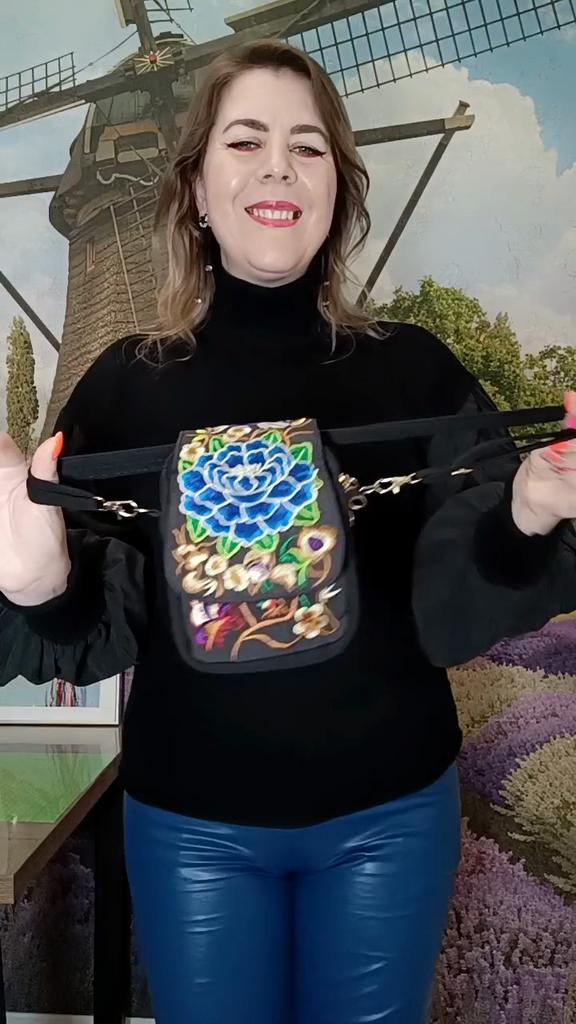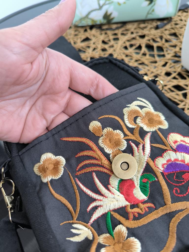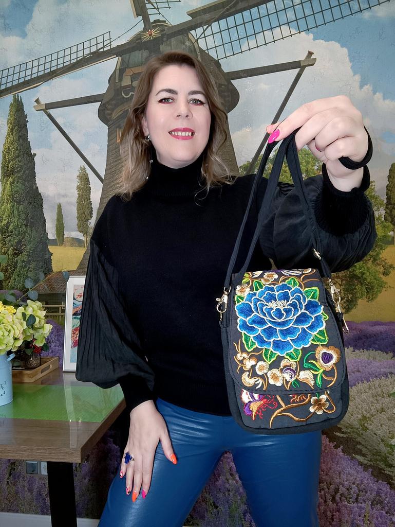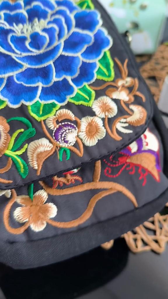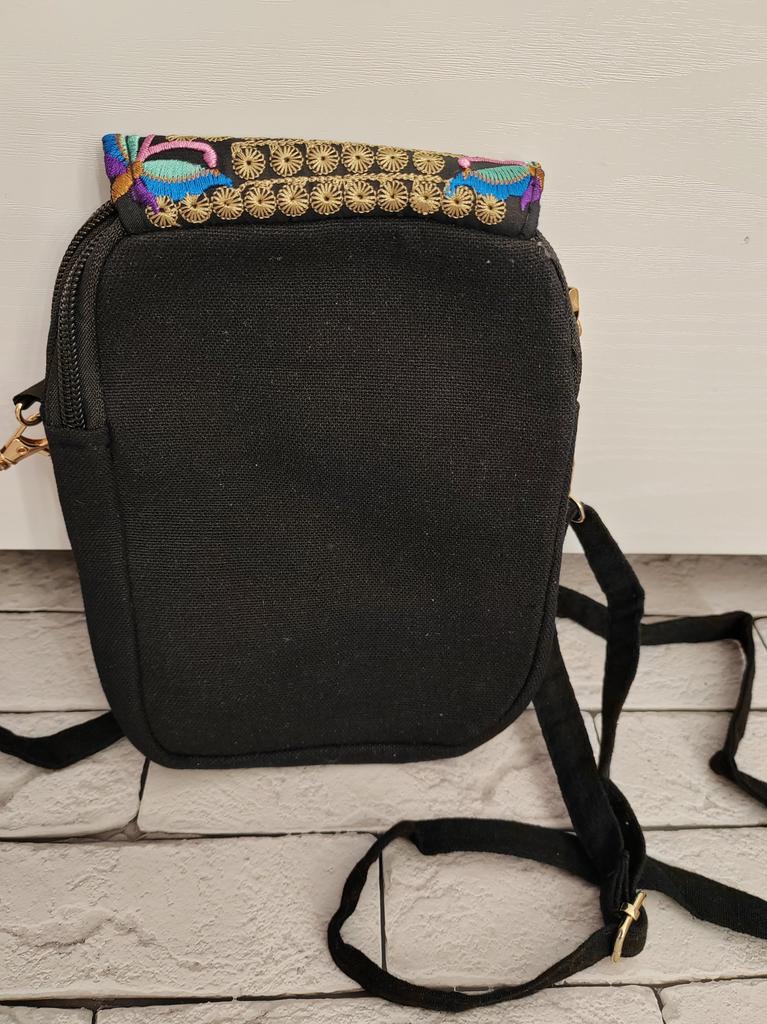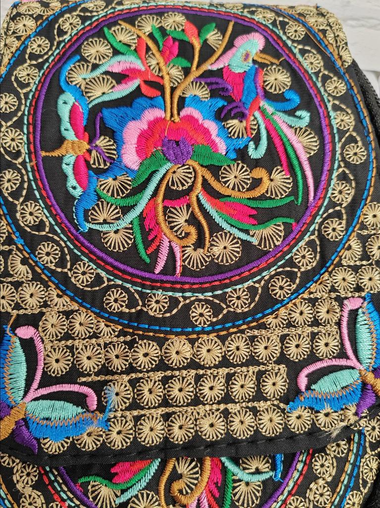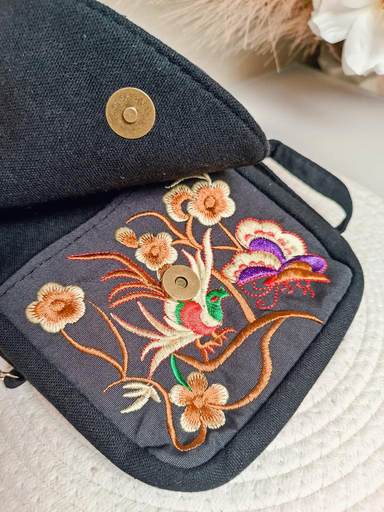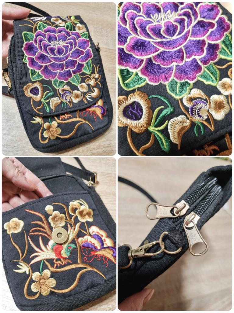 Travel Phone Purse National Canvas Shoulder Small Vintage Boho Ethnic Embroidery Bag for Women Travel Pouch Floral