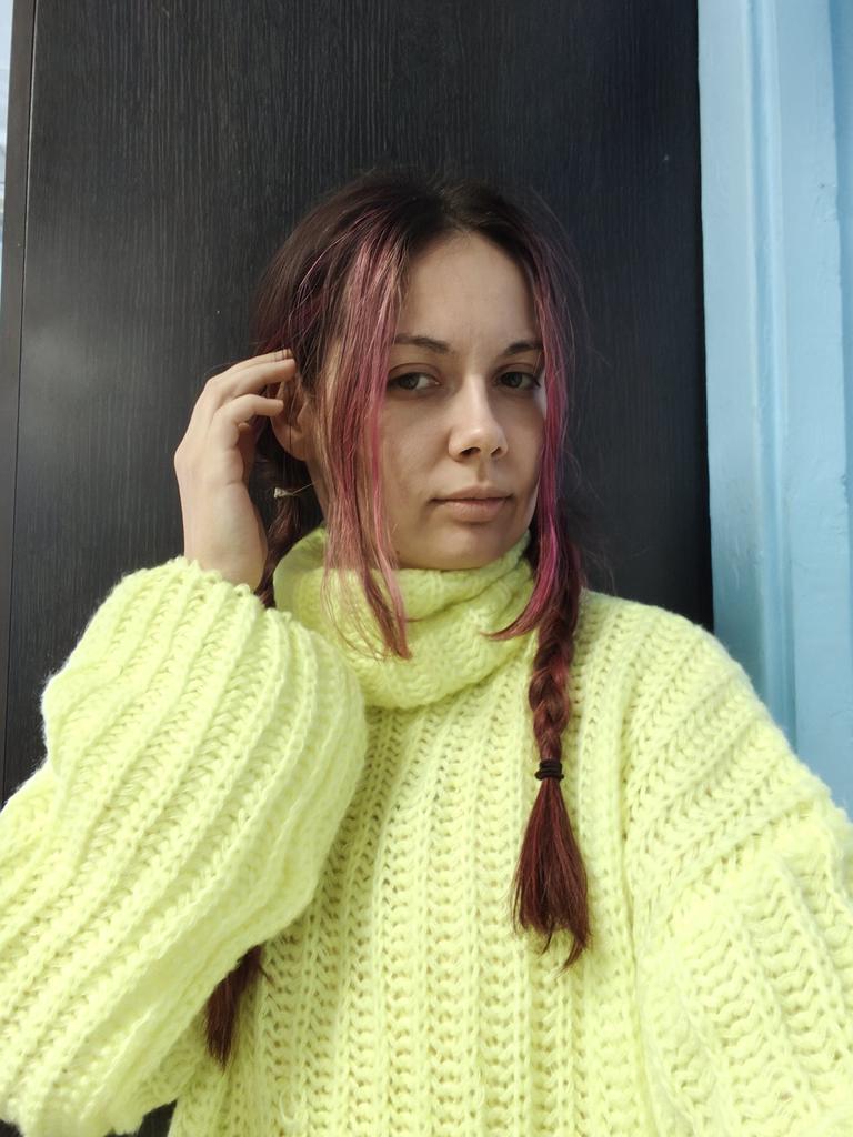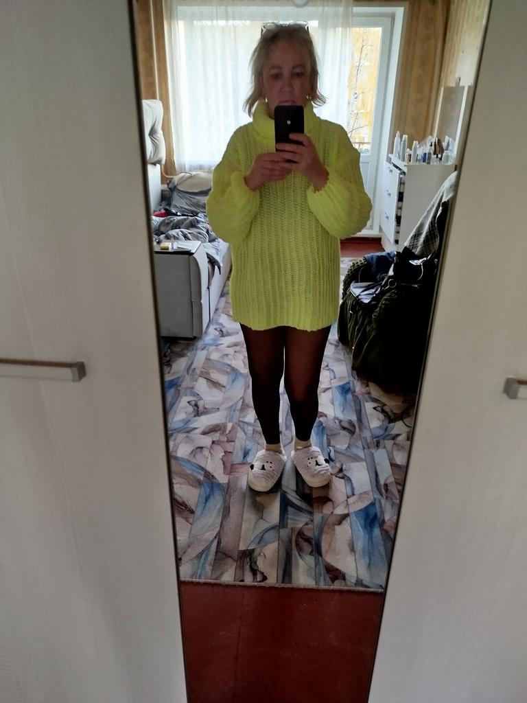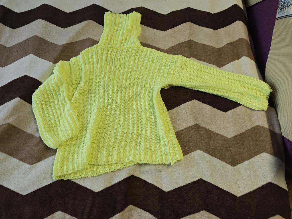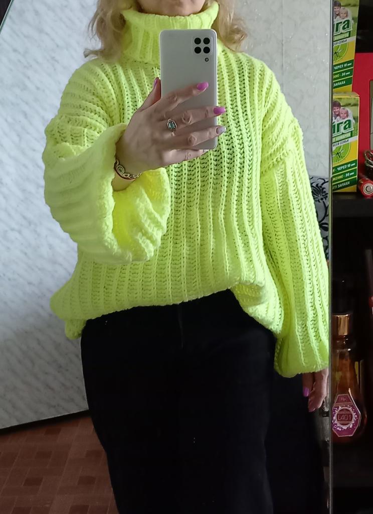 The sweater is not bad, but there's one BUT! It's not knitted in one piece, the neckline is sewn on, and because of that, it doesn't stretch.