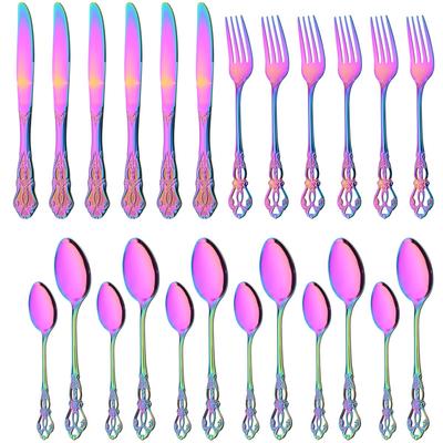 24Pcs Rainbow Dinnerware Cutlery Set Stainless Steel Kitchen Flatware Knife Fork Spoon Cake Fork Vintage Royal Tableware Set