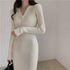 Vintage Knitted Sweater Long Sleeve Dresses Women Slim Korean Elegant Button V Neck Sweater Dress
