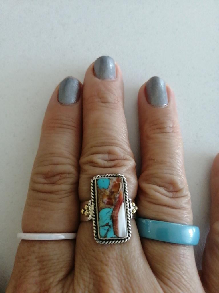 Two-Tone Spiny Oyster Turquoise Gemstone Handmade Solid 925 Sterling Silver Designer Ring Jewelry Gift For Her