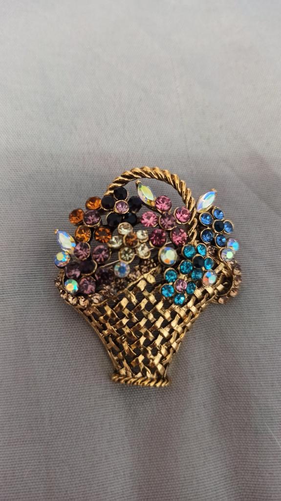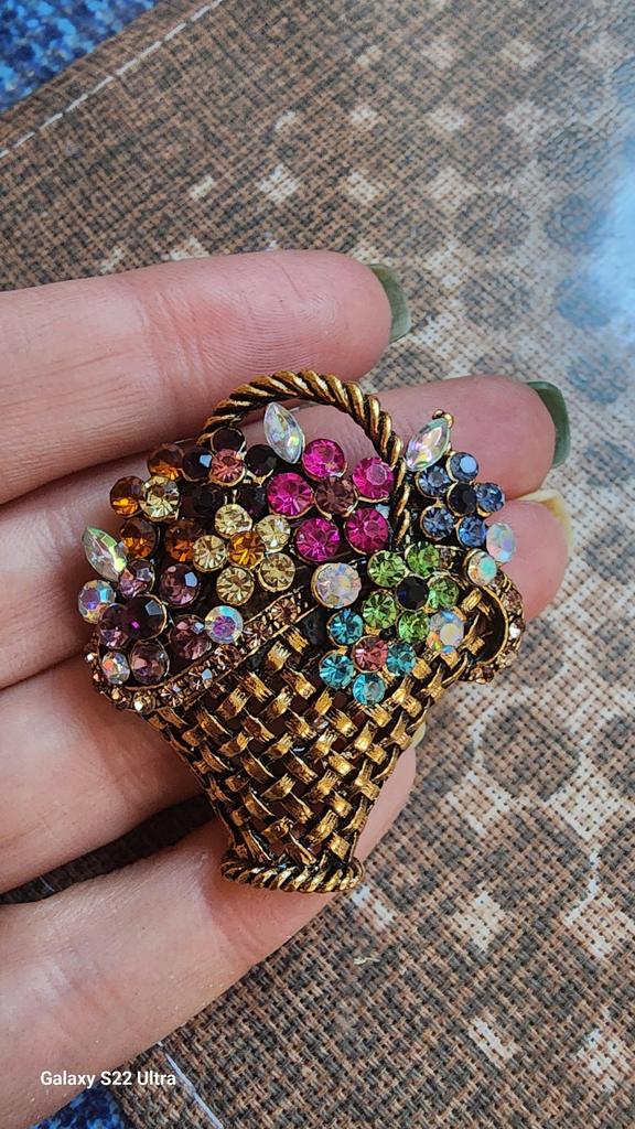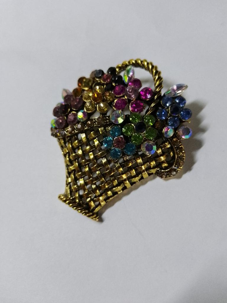 Creative Flower Basket Zircon Brooch Vintage Colorful Pins Women Fashion Jewelry Clothes Coat Decoration Scarf Buckle