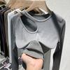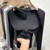 Early Autumn Long-sleeved T-shirt Women's Bottoming Shirt with Careful Machine Design Sense of Tight-fitting Short Hollow Top
