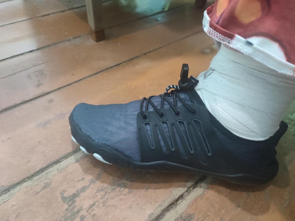 I should have taken a size larger. They should be loose like socks. The laces are elastic, so even if they are a little big, you can tighten the laces...