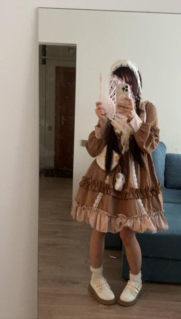 Japanese Gothic Lolita Dress Women Kawaii Bow Bear Lace Blue Dress Long Sleeve Princess Dress Halloween Costume Gift For Girls