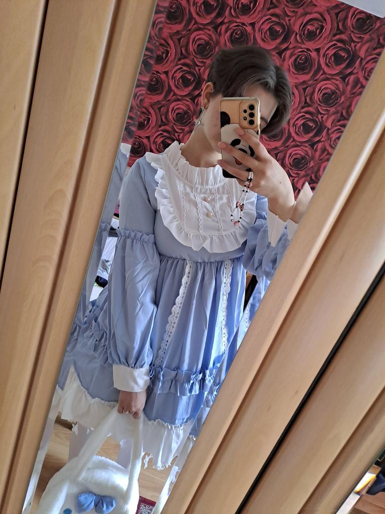 This was really good. Though the bunny bow it doesn’t come with. Ofc it’s a little bit of things with it but overall it’s really good and pretty. I’m not good at poses so it looks really wacky on the pics. But I like the dress overall.
