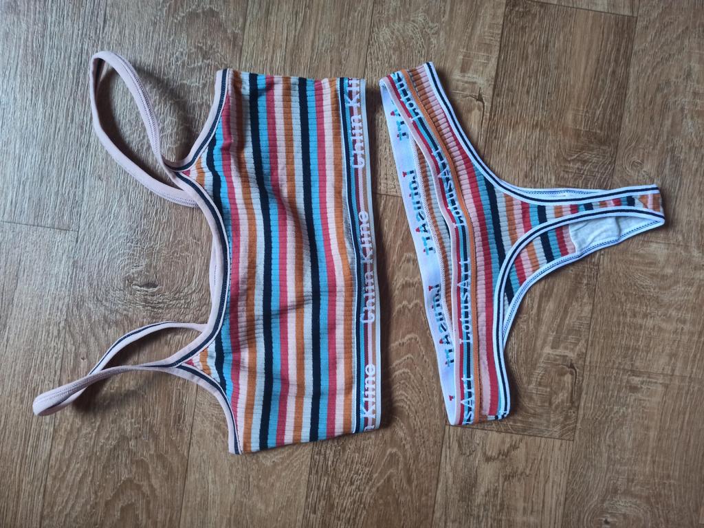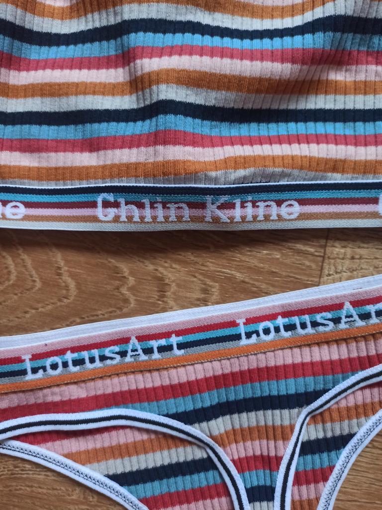 2Pcs/Set Women's Colorful Cotton Underwear Color Striped Bra with Thongs Contrast Color Underwear Vest Women's Seamless Underwear Crop Tops
