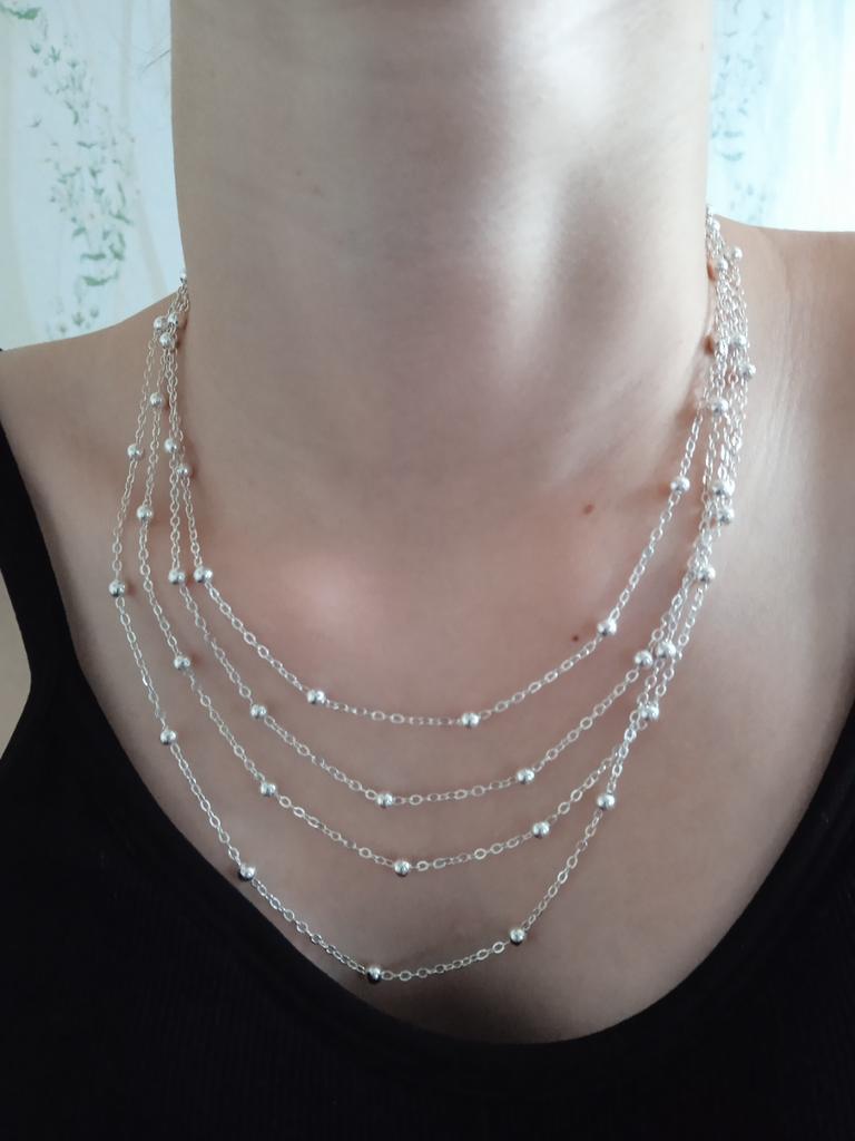 925 Sterling Silver 18 Inch Bead Necklace Charm Jewelry MN287