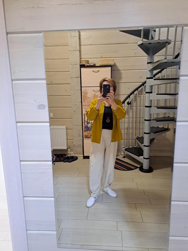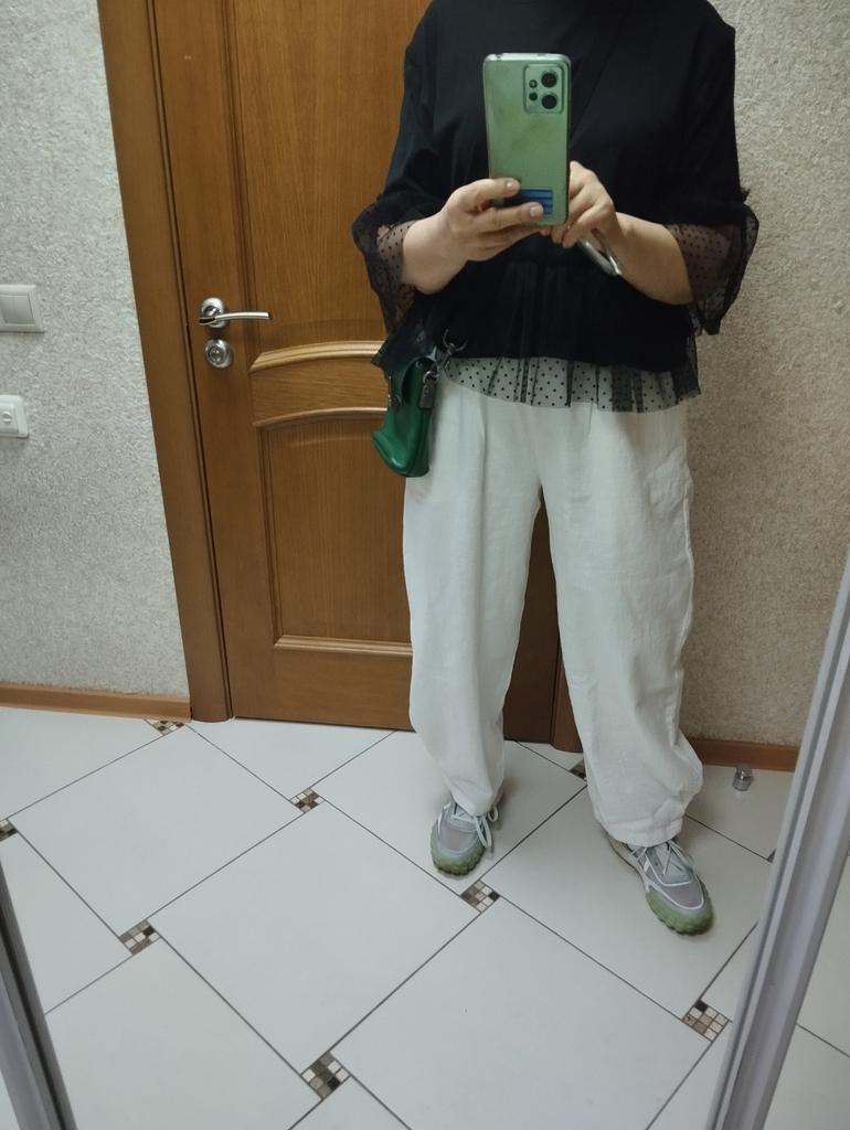 The pants are good, but they run small. You can stretch them to 85 at the waist. I have 82, you can wear them on an empty stomach. The hips are 105, instead of the promised 114. On my hips, 100 is normal, but they are no longer "bananas". The color "yellows", from the photo I thought it would look like unbleached linen.