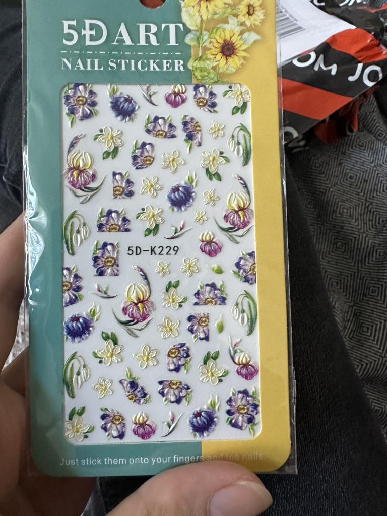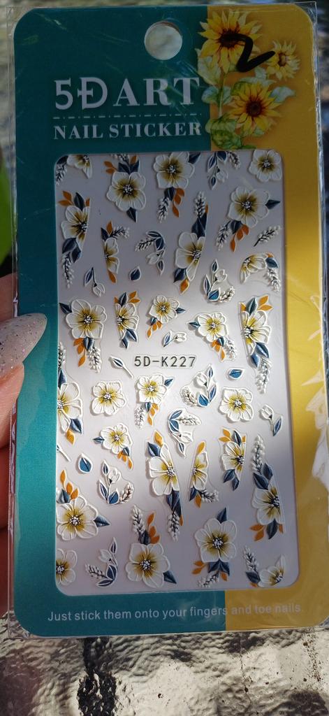 Yellow Mimosa 5D Nail Stickers Embossed Flowers Nails Decals Decor Acrylic Adhesive Sliders Spring Daisy Manicure LA5D-K228