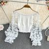 One-shoulder Chiffon Shirt See-through Mesh Stitching Loose Waist Cropped Off-the-shoulder Top Women Tops