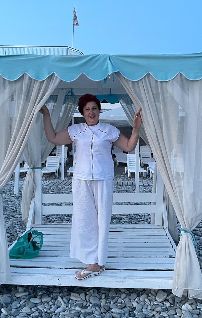 The blouse is very nice, cotton, natural.