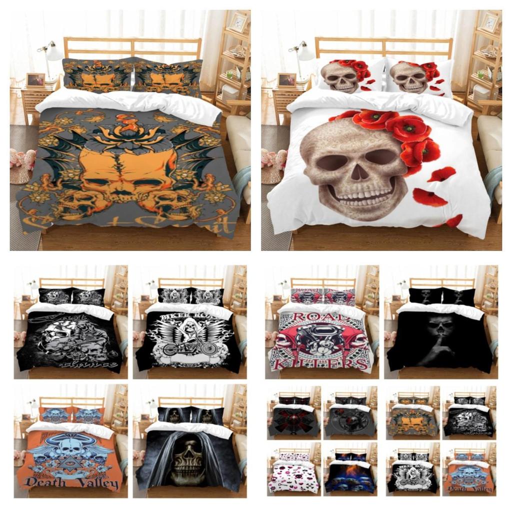 Bed Cover 3D Skull Printing Quilt Cover Set High Quality Single Size Duvet Cover Set Boys Girls Home Bedding Set