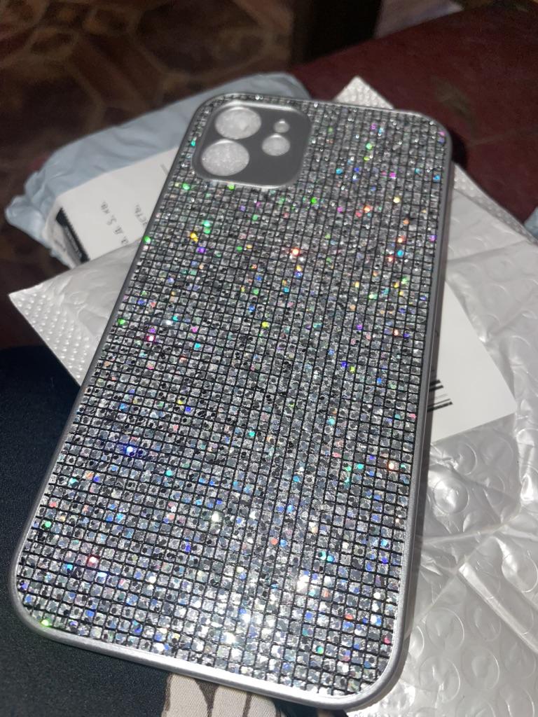Beautiful case, from afar it looks like pebbles, in fact it's small glitter