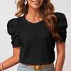 Hollow Out Jacquard O Neck Summer Blouse Elegant Pleated Puff Short Sleeve T-shirt Women Tops Mujer Sweet Casual Shirts 25345