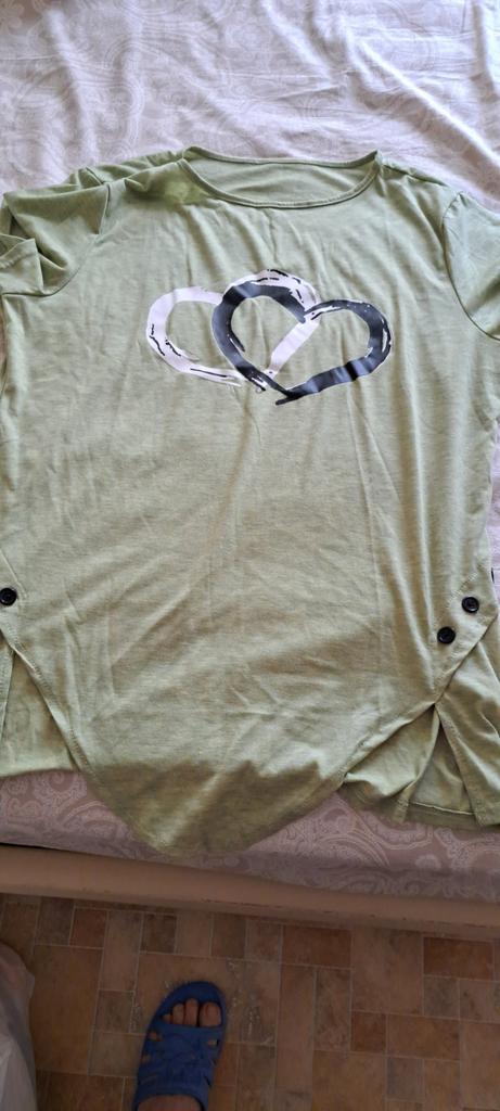 The T-shirt is cute. I should have taken a size larger. My size is 48-50.