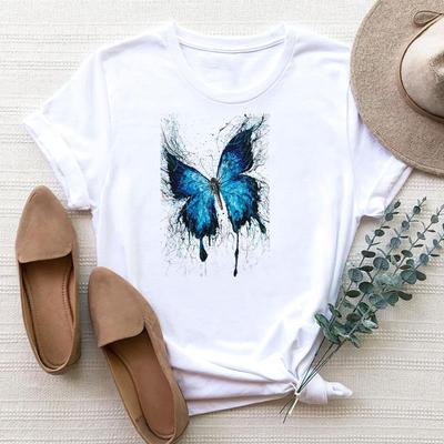 (Asian Size) Clothing Women Butterfly Watercolor Trend Cute Print Short Sleeve Tee Top Fashion T Shirt Woman Female T Graphic T-shirts