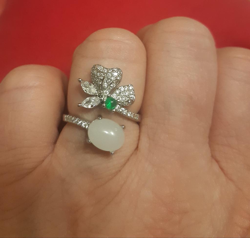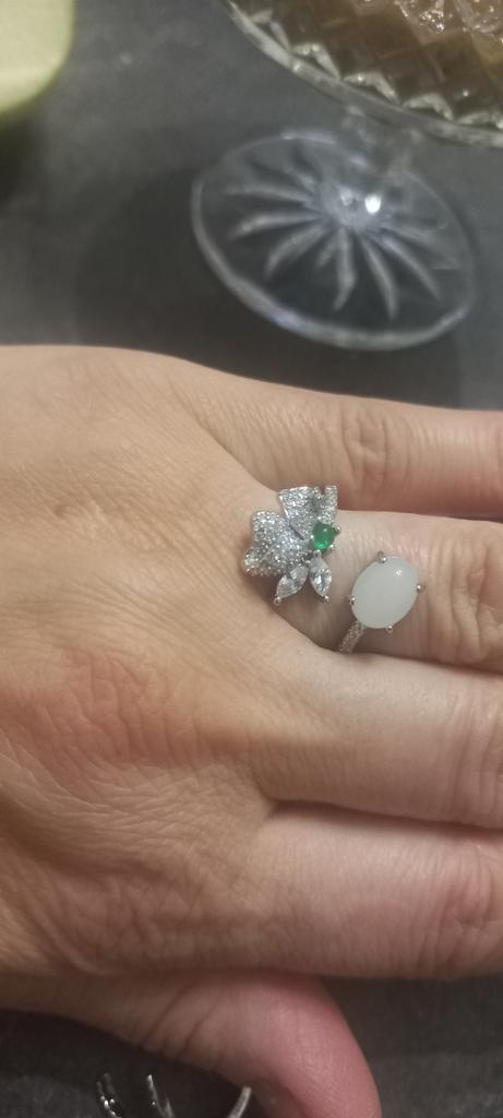BELLA BOX High End Internet Celebrity Live Streaming New Product Simulation Natural Ice White Jade Marrow Agate Full Diamond Open Ring Female Ring