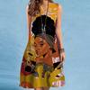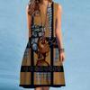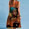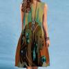 Spring and Summer Printed V-neck Loose Casual Sleeveless Dress Female Beach Vacation Casual Dresses