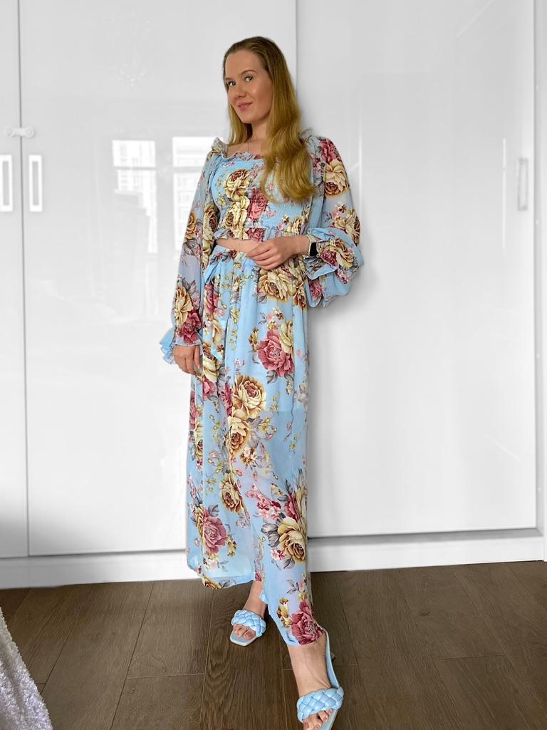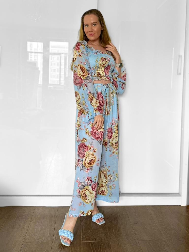 Fashion Set Women's Long Sleeve Square Neck Slim Fit Chiffon Shirt 2 Two Pieces Suits Sets High Waist Slim Wide L