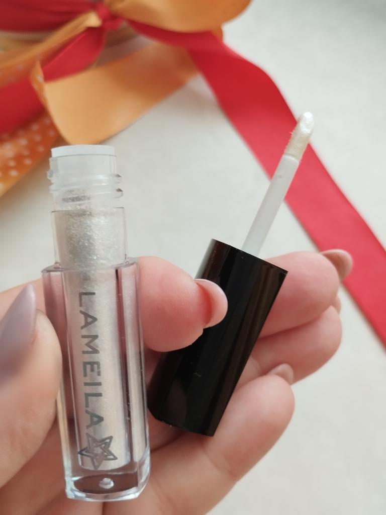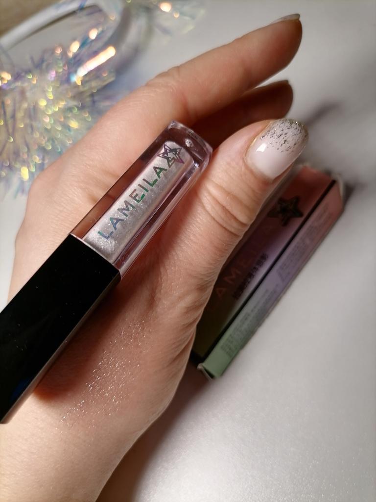 Liquid eyeshadow "Lameila" ✨ Shade #01 This is my repeat order. Before that, I ordered shade #03 for New Year's holidays to create festive makeup. Tina liked the shade, so she decided to order snow-white ones as well. Shadows are easy to apply, do not require shading. They have a delicate glow and a light texture. Personally, the cosmetic does not cause any allergic reactions for me. If the review was useful, put it as a favorite ❤️ I received the goods in 37 days in a combined package 🚚 The track was tracked completely. The arrival at the delivery point was notified by sms 📲 Packaging: bubble bag. The box is not sealed in mica. The package contains all the important information about the cosmetic product in English. The dates are clearly marked. Happy shopping and fast deliveries to everyone 🛒☺️🚀🌷 And remember that every woman is a star, so shine brighter 🌟