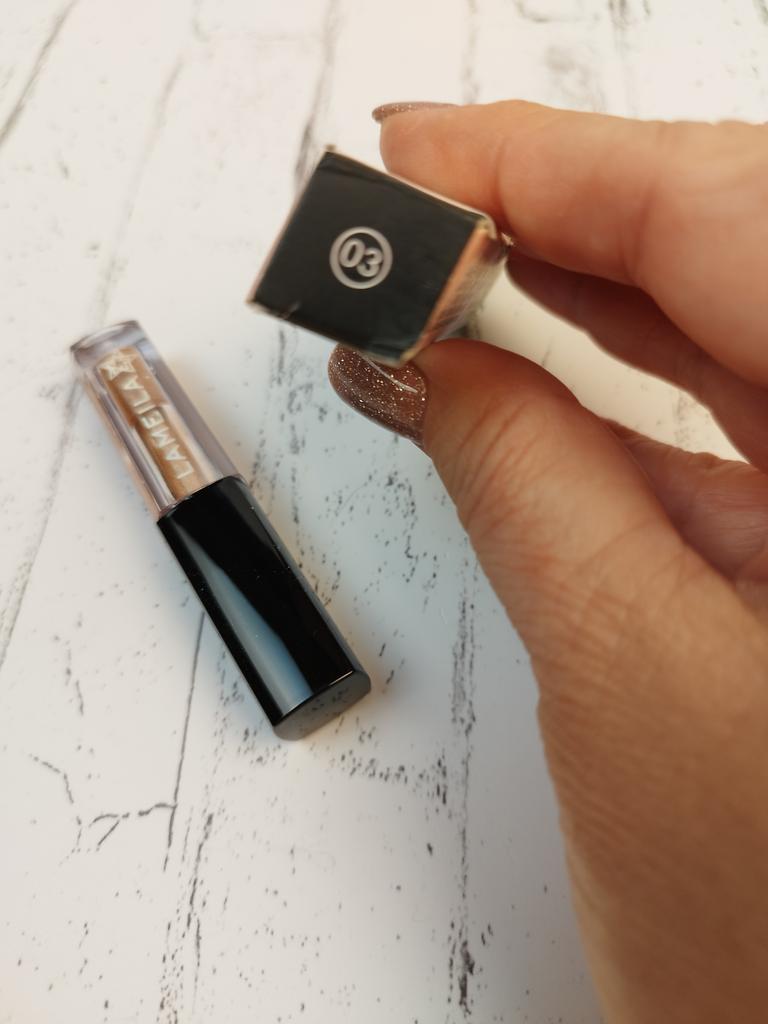 Grab a fresh promo code for 5%: NU6VUIHQZN 😘 Liquid eyeshadow "Lameila"🌟 Shade #03 Highly pigmented liquid shadows with a soft, delicate glow and a light texture that ensures even and easy application. Absolute ease of application, perfect texture that does not require shading, all this allows you to create festive makeup in literally minutes. Shadows can be combined with matte shadows for a more complete look. The shadows are cool - I recommend them 😉🛍️ If the review was useful, put it as a favorite ❤️😘 I received the goods in 34 days in a combined package ✈️ The track was tracked completely. The arrival at the point of issue was announced by sms 📲. Packaging: bubble bag. The box is sealed in mica. Expiry dates are indicated. Happy shopping and fast deliveries to everyone 🛍️☺️🚀🍁 And remember that every woman is a star, so shine brighter 🌟. PS: More promo codes are waiting for you in my Telegram channel: Olena.joom.thebest.🎁🥰.
