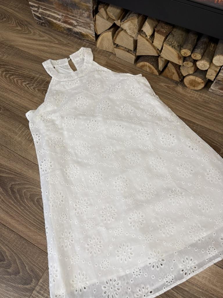 Sleeveless Summer White Dresses Women Vintage Floral Hollow Out Dress Halter Elegant 2023 Solid A Line Short Dress Vestido 27749