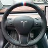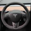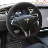 For Tesla modelS Model X Model 3 DIY Custom Leather Suede Steering Wheel Cover Car Wheel Cover Interior