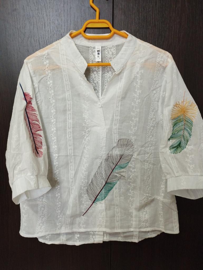 Summer Loose Cotton Blouse Lace V-neck Embroidered Balloon Sleeve Shirt Women's Top