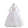 Elegant White Tulle Girls Dress Formal First Communion Princess Kids Party Dress For Girl Bow Wedding Bridemaid Evening Costume