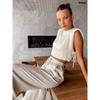 Women Holiday Linen Pant Set Crop Tops Solid Outfits 2 Two Piece Matching Set for Women Sleeveless Casuals Fashion Woman Pants