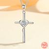 925 Sterling Silver Cross Blue Zircon Pendant Chain Necklace For Women Wedding Jewelry