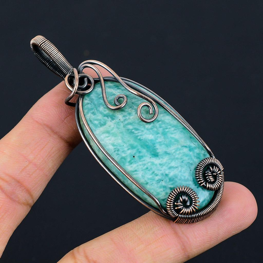 Amazonite Gemstone Pure Copper Wire Wrapped Handmade Jewelry Pendant For Gift