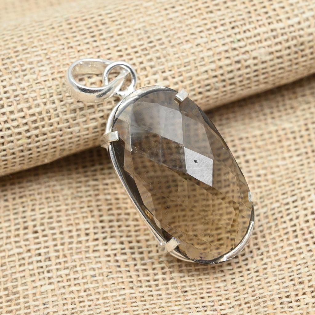 Faceted Smoky Topaz Gemstone 925 Sterling Silver Jewelry Handmade Charming Pendant
