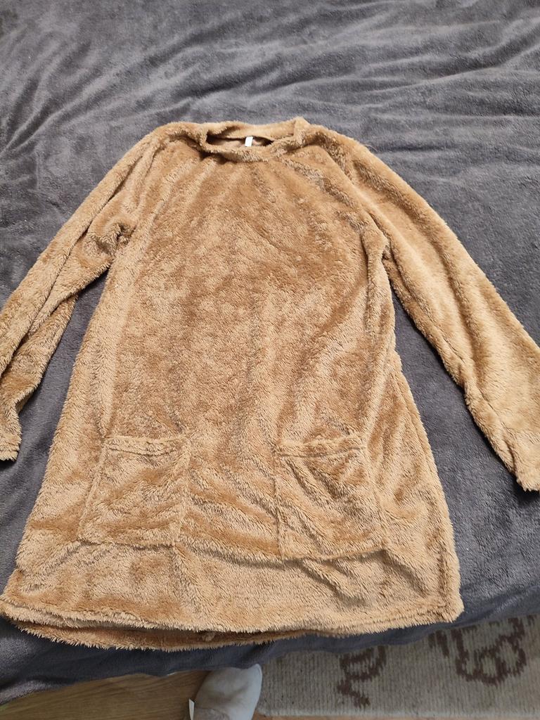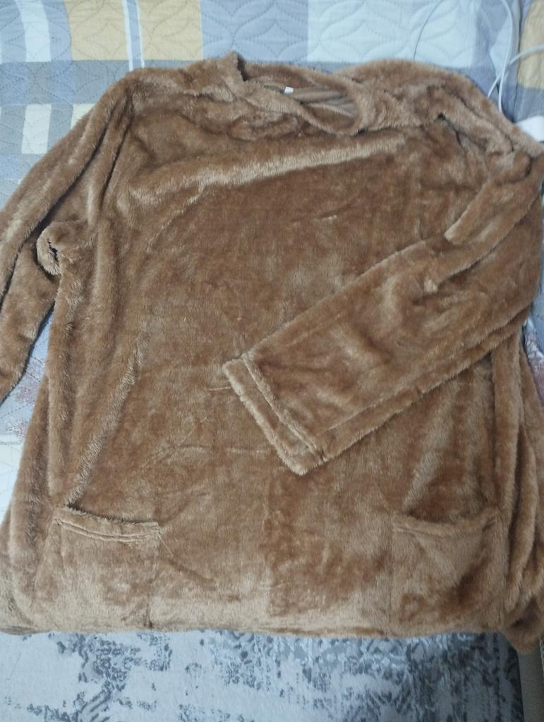 Fleece sweatshirt without hood with two front pockets. ππ₯° The fabric is soft, comfortable, plush and pleasant on the skin. ππ It does not contain cotton but is made of polyester and spandex. ππ The XXXL measures 90 cm long but only 118 cm bust. ππ‘ The finishes are not very neat and the model is magnifying. ππ€