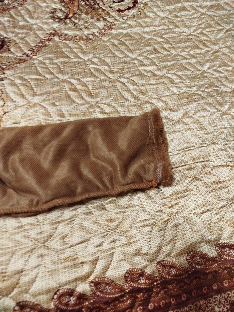 Very thin, gets terribly staticky, all full of threads, not like in the picture