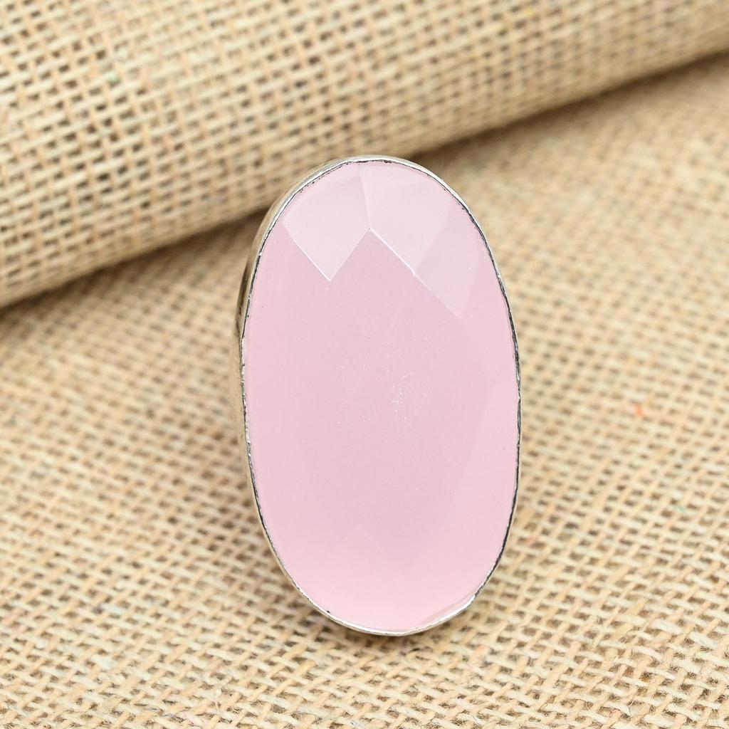 Faceted Pink Chalcedony 925 Sterling Silver Handmade Ring Women's Gift All Size